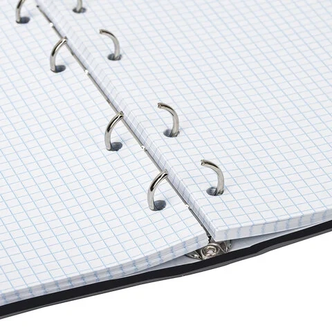 Блок состоит из 120 листов офсетной бумаги белого цвета плотностью 60 г/м2. Линовка – клетка. Жесткая книжная обложка выполнена из переплетного картона и покрыта глянцевой пленкой. Формат А5 является стандартным и обеспечивает комфортное ношение в рюкзаке/ранце или папке. Оборудована кольцевым механизмом с 4-мя кольцами для подшивки сменных блоков, что позволит носить на учебу/работу всего одну тетрадь с возможностью добавлять и менять листы. Диаметр колец составляет 20 мм.