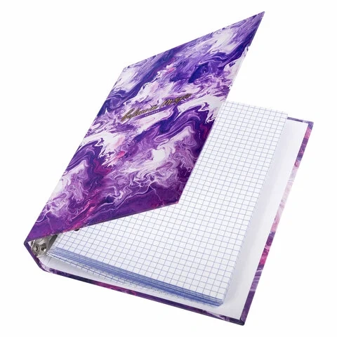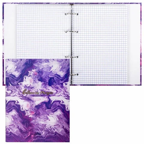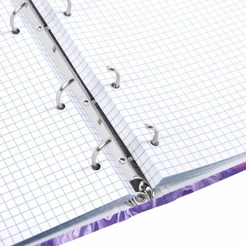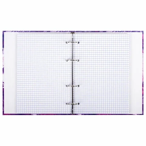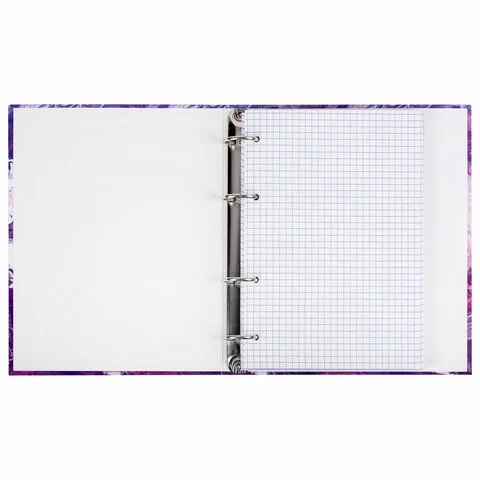 Снабжена кольцевым механизмом с 4 кольцами для подшивки сменных блоков, что позволит брать на учебу/работу всего одну тетрадь с возможностью добавлять и менять листы.