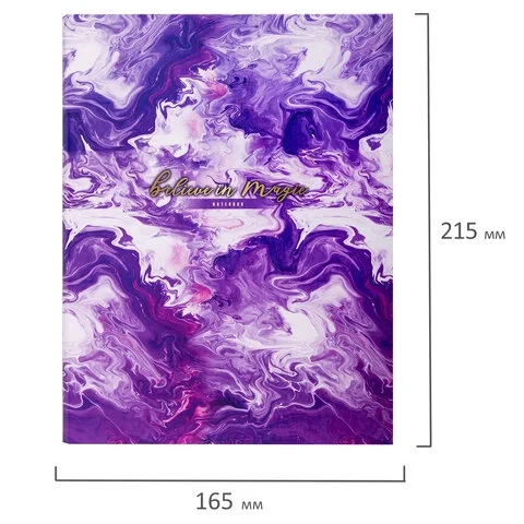 Блок состоит из 120 листов офсетной бумаги белого цвета плотностью 60 г/м2. Линовка – клетка. Жесткая книжная обложка выполнена из переплетного картона и покрыта глянцевой пленкой. Формат А5 является стандартным, поэтому тетрадь удобно носить в рюкзаке/ранце или папке.