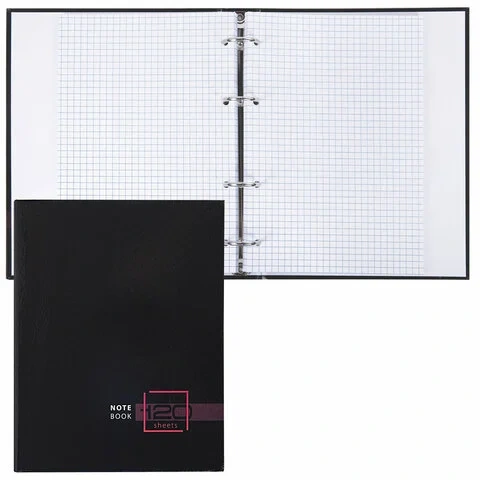 Снабжена кольцевым механизмом с 4 кольцами для подшивки сменных блоков, что позволит носить на учебу/работу всего одну тетрадь с возможностью добавлять и менять листы.