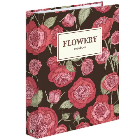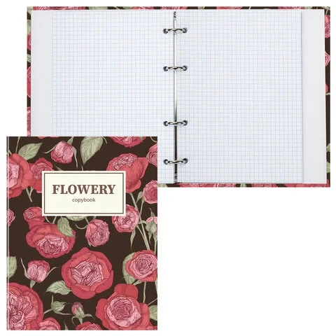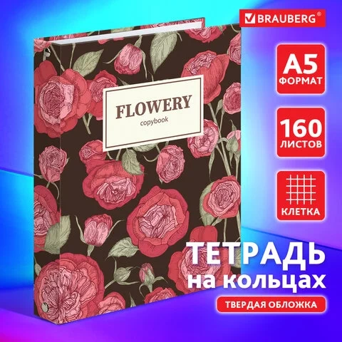 Тетрадь на кольцах А5 (165х215 мм), 160 листов, твердый картон, клетка, BRAUBERG, Flowers, 404090