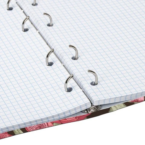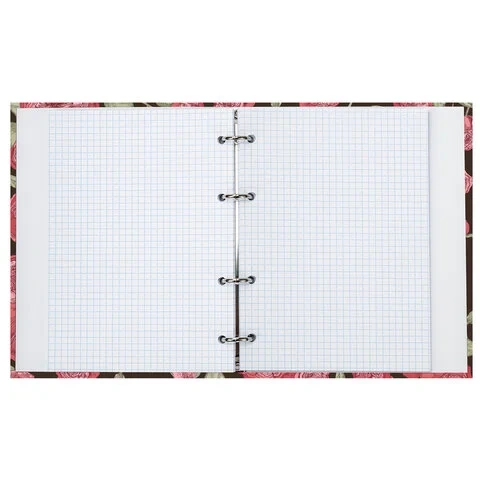 Блок состоит из 160 листов офсетной бумаги белого цвета плотностью 60 г/м2. Линовка – клетка. Жесткая книжная обложка выполнена из переплетного картона и покрыта глянцевой пленкой. Формат А5 является стандартным и обеспечивает комфортное ношение в рюкзаке/ранце или папке. Оборудована кольцевым механизмом с 4-мя кольцами для подшивки сменных блоков, что позволит носить на учебу/работу всего одну тетрадь с возможностью добавлять и менять листы. Диаметр колец составляет 20 мм.