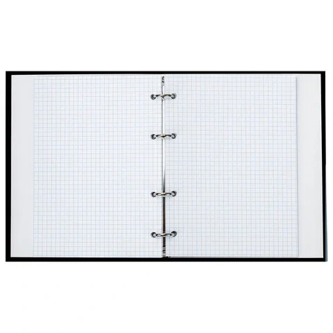 Блок состоит из 160 листов офсетной бумаги белого цвета плотностью 60 г/м2. Линовка – клетка. Жесткая книжная обложка выполнена из переплетного картона и покрыта глянцевой пленкой. Формат А5 является стандартным и обеспечивает комфортное ношение в рюкзаке/ранце или папке. Оборудована кольцевым механизмом с 4-мя кольцами для подшивки сменных блоков, что позволит носить на учебу/работу всего одну тетрадь с возможностью добавлять и менять листы. Диаметр колец составляет 20 мм.