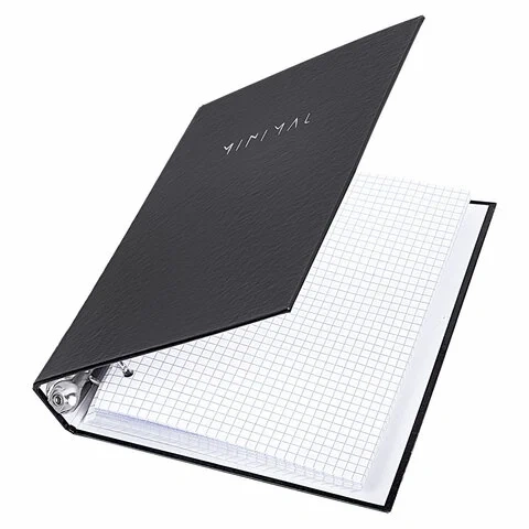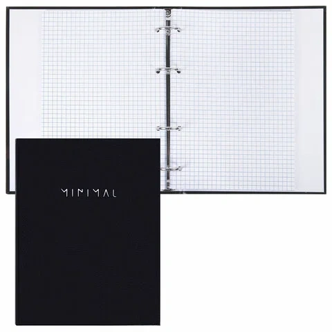 Тетрадь на кольцах А5 175х215 мм, 120 л., твердый картон, клетка, BRAUBERG 'Minimal black', 404713