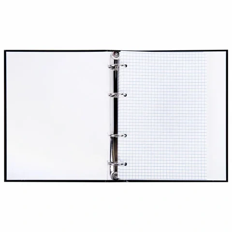 Снабжена кольцевым механизмом с 4 кольцами для подшивки сменных блоков, что позволит брать на учебу/работу всего одну тетрадь с возможностью добавлять и менять листы.