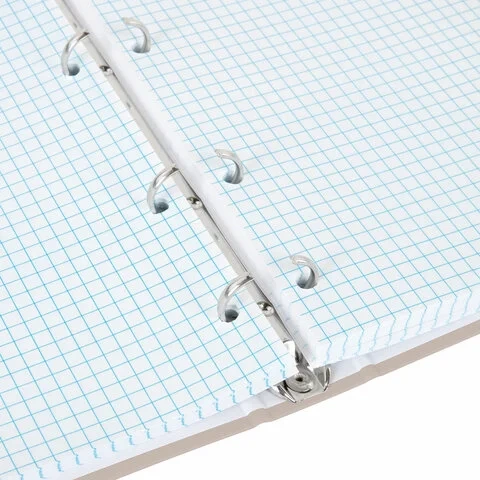 Блок состоит из 120 листов офсетной бумаги белого цвета плотностью 60 г/м2. Линовка – клетка. Жесткая книжная обложка выполнена из яркого переплетного картона и покрыта матовой пленкой. Формат А5 является стандартным и обеспечивает комфортное ношение в рюкзаке, ранце или папке. Оборудована кольцевым механизмом с 4 кольцами для подшивки сменных блоков, что позволит носить на учебу или работу всего одну тетрадь с возможностью добавлять и менять листы. Диаметр колец составляет 20 мм.