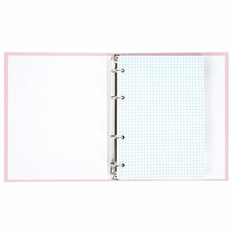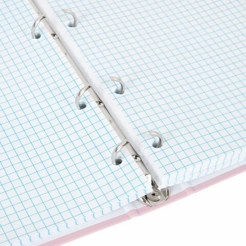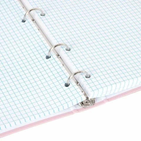 Блок состоит из 120 листов офсетной бумаги белого цвета плотностью 60 г/м2. Линовка – клетка. Жесткая книжная обложка выполнена из яркого переплетного картона и покрыта матовой пленкой. Формат А5 является стандартным и обеспечивает комфортное ношение в рюкзаке, ранце или папке. Оборудована кольцевым механизмом с 4 кольцами для подшивки сменных блоков, что позволит носить на учебу или работу всего одну тетрадь с возможностью добавлять и менять листы. Диаметр колец составляет 20 мм.