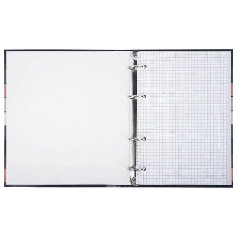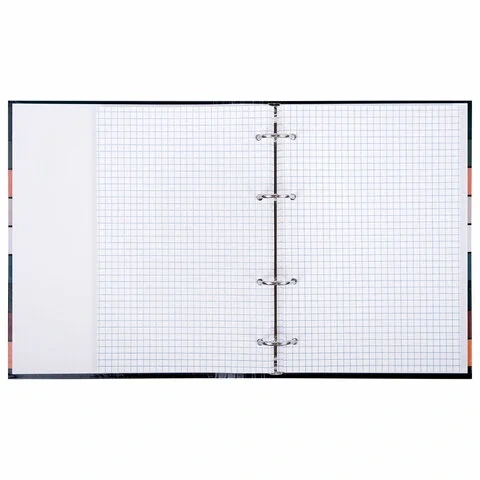 Снабжена кольцевым механизмом с 4-мя кольцами для подшивки сменных блоков, что позволит брать на учебу/работу всего одну тетрадь с возможностью добавлять и менять листы.