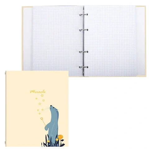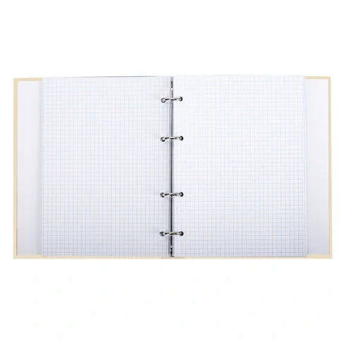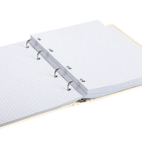 Блок состоит из 240 листов офсетной бумаги белого цвета плотностью 60 г/м2. Листы в нем удобно разделены для вложения в тетрадь по частям, чтобы не перегружать кольцевой механизм. Линовка – клетка. Жесткая книжная обложка выполнена из переплетного картона и покрыта глянцевой пленкой. Формат А5 является стандартным и обеспечивает комфортное ношение в рюкзаке/ранце или папке. Оборудована кольцевым механизмом с 4-мя кольцами для подшивки сменных блоков, что позволит носить на учебу/работу всего одну тетрадь с возможностью добавлять и менять листы. Диаметр колец составляет 20 мм.