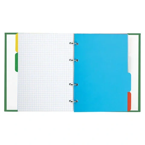 Формат А5 является стандартным и обеспечивает комфортное ношение в рюкзаке, ранце или папке. Оборудована кольцевым механизмом с 4 кольцами для подшивки сменных блоков, что позволит носить на учебу или работу всего одну тетрадь с возможностью добавления и замены листов. Тетрадь снабжена разделителями для удобства ведения разных тематик. Диаметр колец составляет 20 мм.
