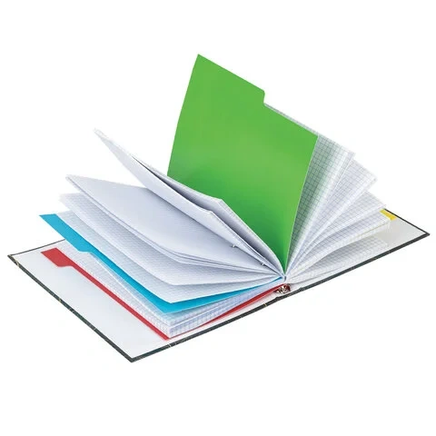 Блок состоит из 240 листов офсетной бумаги белого цвета плотностью 60 г/м2. Листы в нем удобно разделены для вложения в тетрадь по частям, чтобы не перегружать кольцевой механизм. Линовка – клетка. Жесткая книжная обложка выполнена из переплетного картона и покрыта глянцевой пленкой.