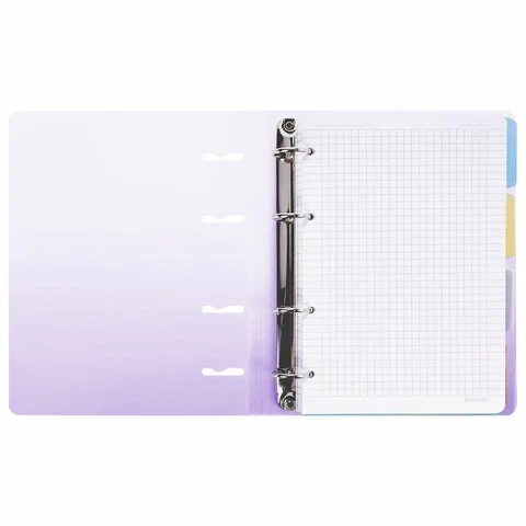 Тетрадь на кольцах А5 175х220 мм, 120 л., пластик, с разделителями, BRAUBERG, Фиолетовый, 404627