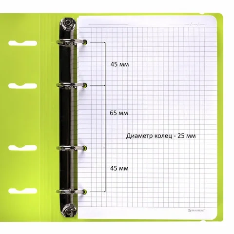 Тетрадь на кольцах А5 175х220 мм, 120 л., пластик, с резинкой, BRAUBERG, Салатовый, 404619