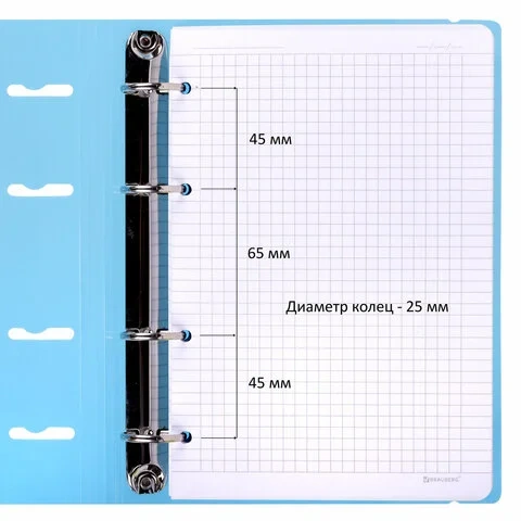 Кольцевой механизм позволяет легко сменить внутренний блок на новый, не покупая при этом новую тетрадь. Диаметр колец составляет 25 мм. Одна такая тетрадь способна заменить несколько небольших тетрадей для разного рода информации, благодаря чему место в сумке расходуется более рационально.