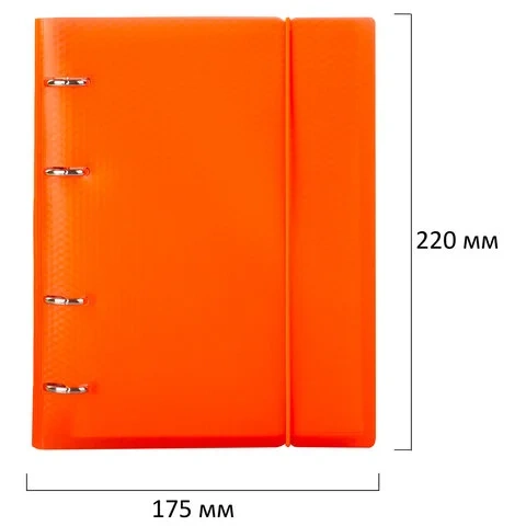 Тетрадь состоит из 120 листов офсетной бумаги плотностью 60 г/м2 с линовкой в клетку. Обложка тетради с однотонным дизайном из высококачественного пластика имеет резинку-фиксатор, благодаря чему тетрадь не раскроется в сумке или портфеле и листы не помнутся. Формат А5 является стандартным и обеспечивает комфортное ношение в рюкзаке/ранце или папке. Кольцевой механизм позволяет легко сменить внутренний блок на новый, не покупая при этом новую тетрадь - его нужно просто разжать. Одна такая тетрадь способна заменить несколько небольших тетрадей для разного рода информации, благодаря чему место в сумке расходуется более разумно. Выполнена в ярком оранжевом цвете.