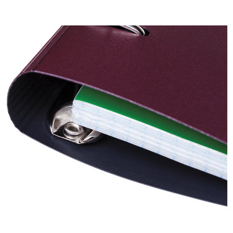 Стильная вырубка под кольца надежно удерживает тетрадь закрытой, фиксирует резинку и предотвращает её соскальзывание. Кольцевой механизм обеспечивает удобную и быструю смену или добавление листов.