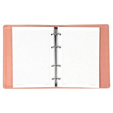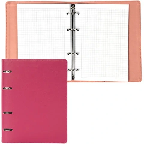 Тетрадь состоит из 120 листов офсетной бумаги плотностью 70 г/м2 с линовкой в клетку и полями. Обложка тетради с однотонным дизайном стилизована под фактурную кожу розового цвета и прошита по периметру. Формат А5 является стандартным и обеспечивает комфортное ношение в рюкзаке/ранце или папке. Кольцевой механизм позволяет легко сменить внутренний блок на новый, не покупая при этом новую тетрадь - его нужно просто разжать. Одна такая тетрадь способна заменить несколько небольших тетрадей для разного рода информации, благодаря чему место в сумке расходуется более разумно.