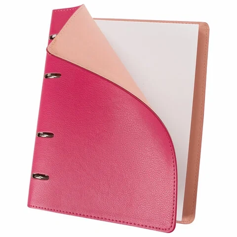 Тетрадь на кольцах А5 (180х220 мм), 120 л., под фактурную кожу, BRAUBERG 'Joy', розовый/светло-розов