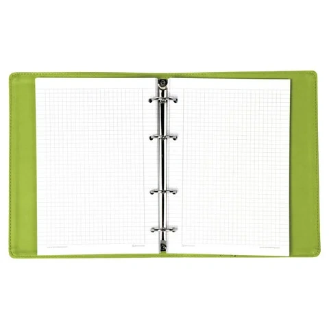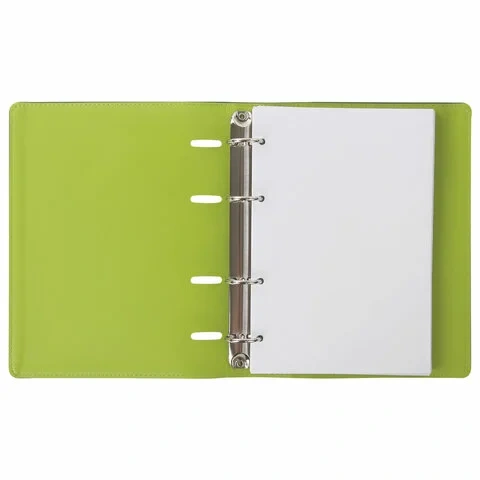 Тетрадь состоит из 120 листов офсетной бумаги плотностью 70 г/м2 с линовкой в клетку и полями. Обложка тетради с однотонным дизайном стилизована под фактурную кожу зеленого цвета и прошита по периметру. Формат А5 является стандартным и обеспечивает комфортное ношение в рюкзаке/ранце или папке. Кольцевой механизм позволяет легко сменить внутренний блок на новый, не покупая при этом новую тетрадь - его нужно просто разжать. Одна такая тетрадь способна заменить несколько небольших тетрадей для разного рода информации, благодаря чему место в сумке расходуется более разумно.