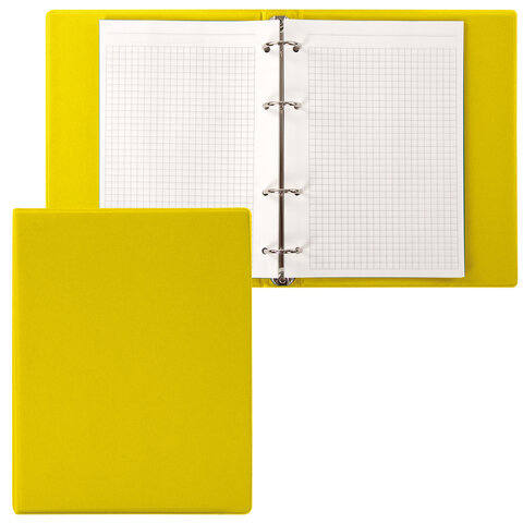 Тетрадь на кольцах А5 (180х220 мм), 80 л., обложка ПВХ, клетка, BRAUBERG, желтый, 403912