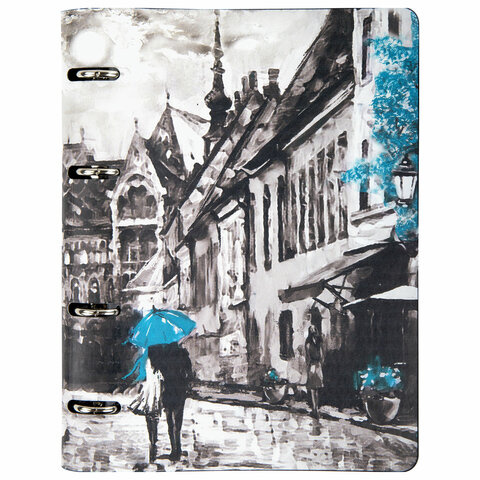 Тетрадь на кольцах А5 (180х220 мм), 80 листов, под кожу, клетка, BRAUBERG VISTA, Town, 112121
