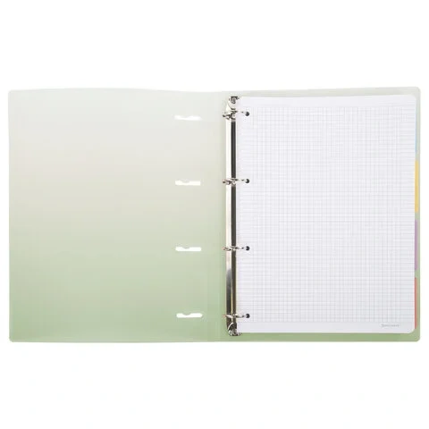 Тетрадь на кольцах БОЛЬШАЯ 305х235 мм А4, 120 л., пластик, с разделителями, BRAUBERG, Зеленый, 40462