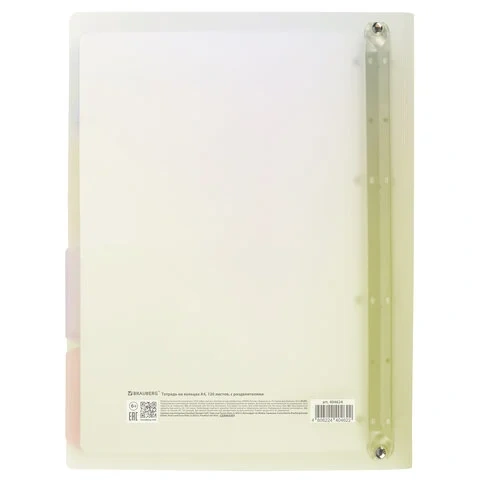 Тетрадь на кольцах БОЛЬШАЯ 305х235 мм А4, 120 л., пластик, с разделителями, BRAUBERG, Желтый, 404624