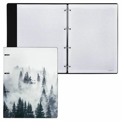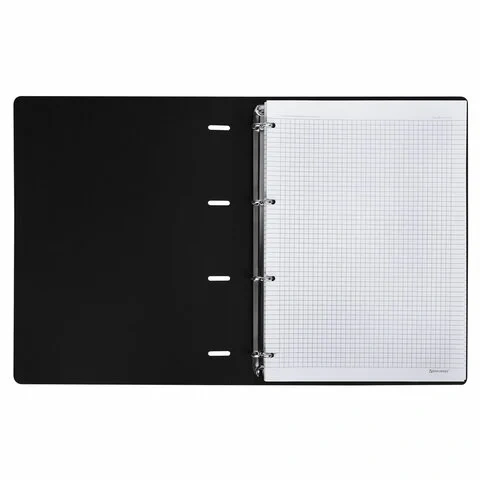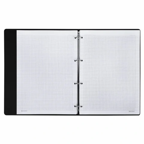 Блок состоит из 120 листов офсетной бумаги белого цвета плотностью 70 г/м2. Линовка – клетка с полями. Гибкая обложка из экокожи с вырубкой под кольца выполнена из износоустойчивого материала с текстурой под гладкую кожу. Увеличенный формат А4 предназначен для ведения большого объема записей. Кольцевой механизм позволяет легко сменить внутренний блок на новый, не покупая при этом новую тетрадь. Одна такая тетрадь способна заменить несколько небольших тетрадей для разного рода информации.