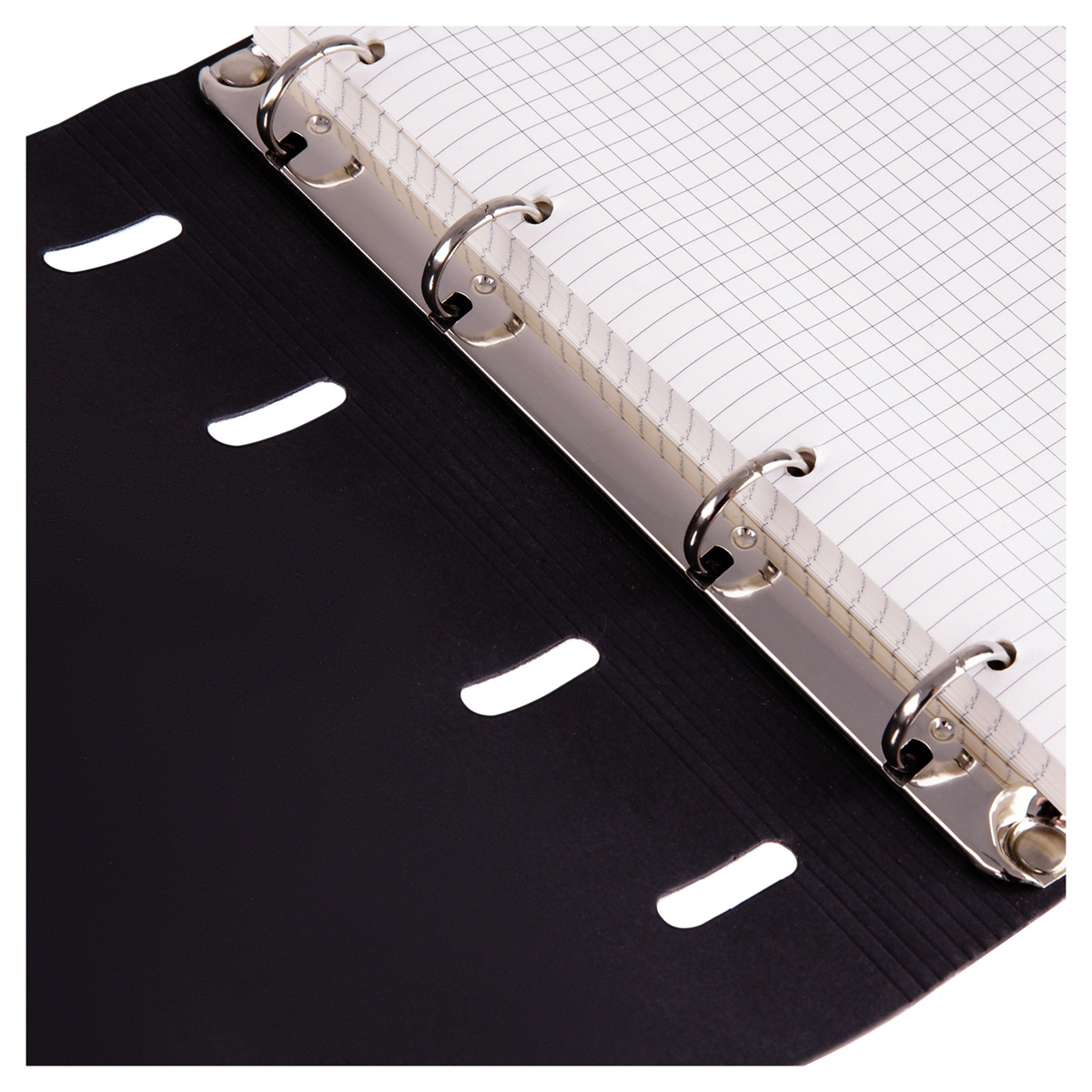 Тетрадь общая на кольцах Greenwich Line Elaborate shapes формата А5 (170*215 мм) – надежный помощник на учебе и работе. В ней удобно хранить большой объем записей. Обложка выполнена из высококачественной экокожи и имеет стильный дизайн. Внутренний блок – 80 листов высококачественной кремовой бумаги повышенной плотности 80 г/м2. Линовка – клетка без полей. Тип крепления – кольцевой механизм, состоящий из 4 колец. При необходимости можно менять или добавлять листы. Тетрадь упакована в пакет.