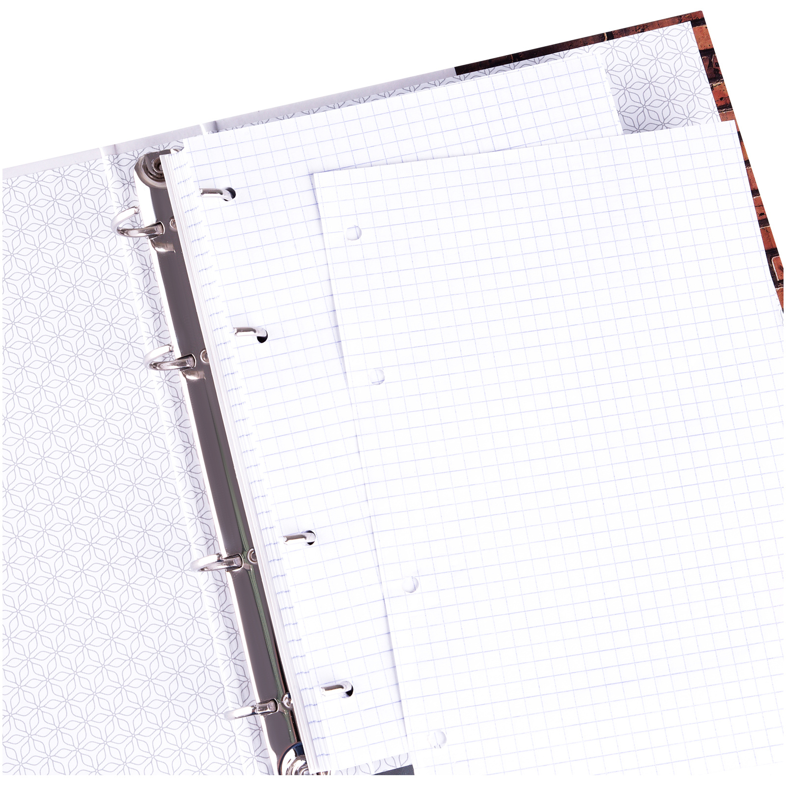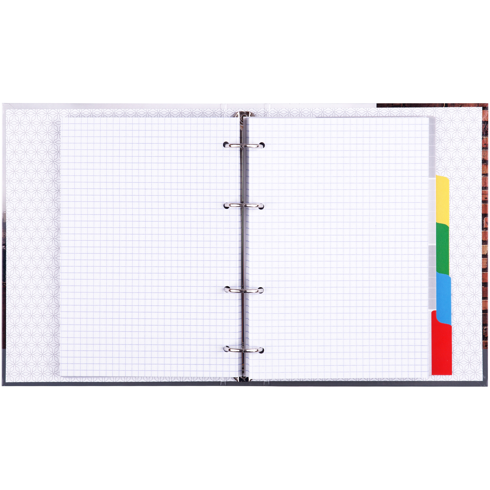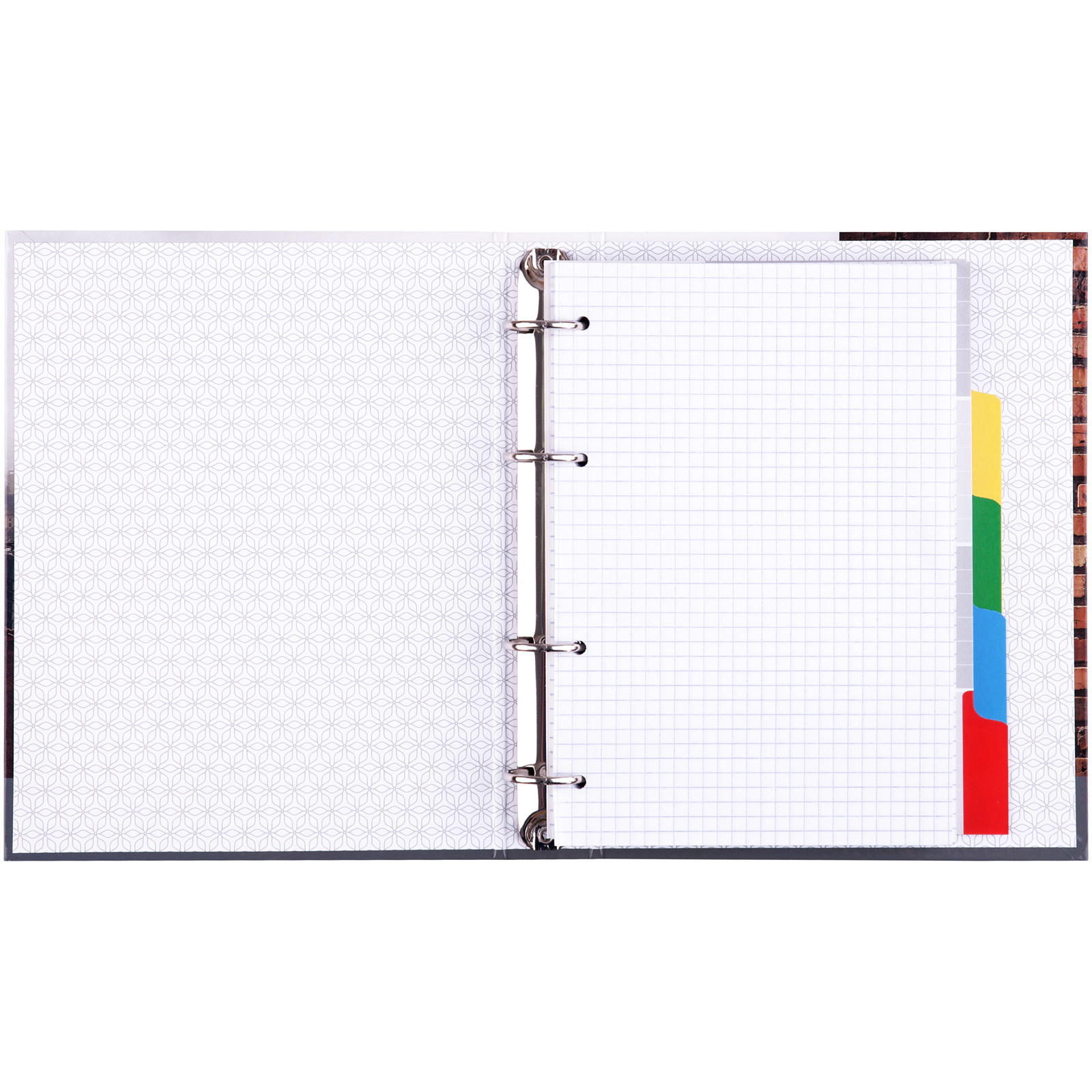 Тетрадь на кольцах удобна для большого объема записей. Легко вынимать и вставлять дополнительные листы. Блок - 160 листов из офсетной бумаги 60 гр/м2. Линовка - клетка. Обложка с удобным скгругленным корешком, выполненная из твердого картона с глянцевой ламинацией.