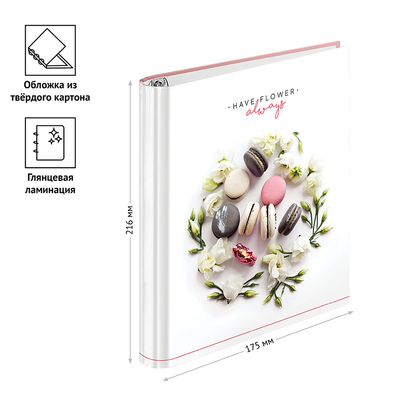 Тетрадь на кольцах удобна для большого объема записей. Легко вынимать и вставлять дополнительные листы. Блок - 120 листов из офсетной бумаги 60 гр/м2. Линовка - клетка. Обложка с удобным скгругленным корешком, выполненная из твердого картона с глянцевой ламинацией.