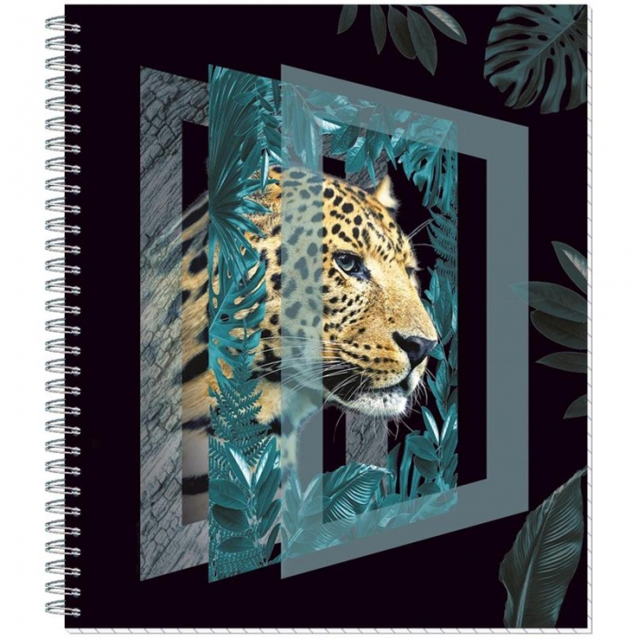 Тетрадь общая представлена в формате А5+ (170203 мм) . Блок выполнен из офсетной бумаги и состоит из 80 листов в клетку, плотностью 60 г/кв.м. Обложка изготовлена из мелованного картона, плотностью 200 г/ кв.м., украшена глянцевым лакированием. Дизайн обложки изображение хищника в стиле арт. Общая тетрадь скреплена с помощью спирали (металлического гребня).