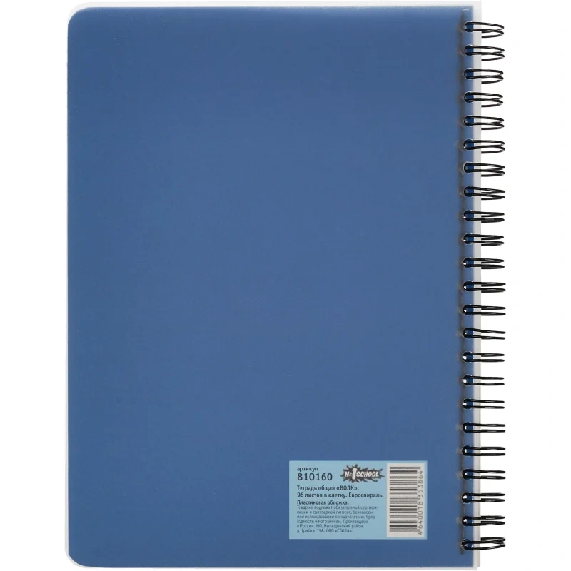 Тетради более 60 листов №1 School Волк, А5, 96 листов, в клетку, на спирали, пластик