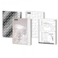 Бизнес-тетрадь Attache формата А5, 120 листов на спирали. Бумага — белый офсет плотностью 65 г/кв.м. Разлиновка бумаги — синяя клетка, есть поля. Обложка мягкая с матовой ламинацией, выполнена в бело-серебристых тонах. Тетрадь предназначена для ведения деловых и учебных записей.