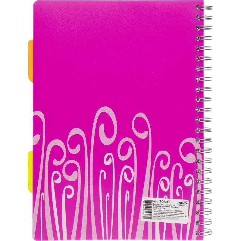 Тетрадь общая Attache Fantasy розовая, A4, 140 листов, в клетку, на спирали, пластик