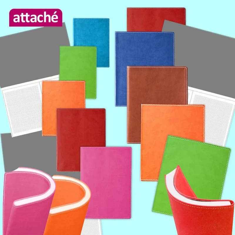 Тетрадь Attache синяя, A4, 96 листов, в клетку, на сшивке, искусственная кожа