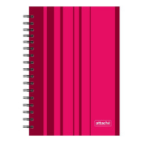 Бизнес-тетрадь Attache Concept формата А5. Обложка твердая, из плотного картона, с матовой ламинацией, строгий офисный дизайн, цвет — бордовый. Тиснение логотипа на обложке выполнено серебряной фольгой. Блок включает 120 листов офсетной бумаги плотностью 65 г/кв.м, тип крепления — спираль. Листы в клетку, белизна 100%.