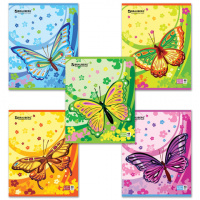 Тетрадь общая Brauberg Бабочки, А5, 48 листов, в клетку, на скрепке, мелованный картон c блестками
