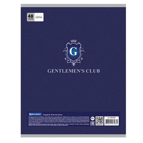 Тетрадь Brauberg Эко Клуб джентельменов, А5, 48 листов, в клетку, на скрепке, мелованный картон
