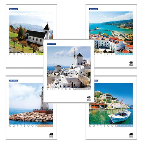 Тетрадь Brauberg Каникулы, А5, 48 листов, в клетку, на скрепке, мелованный картон