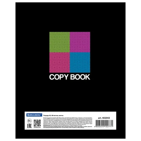 Общая тетрадь формата А5 содержит 48 листов, с линовкой в клетку и полями. Скрепка плотно соединяет листы, которые при желании можно аккуратно вырвать. Однотонная обложка изготовлена из высококачественного импортного картона. Внутренний блок - офсетная бумага плотностью 60 г/м2.