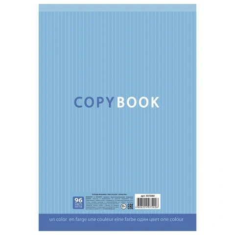 Внутренний блок содержит 96 листов офсетной бумаги плотностью 60 г/м2. Обложка изготовлена из мелованного картона. Линовка - клетка. Скрепка надежно скрепляет листы между собой. Белизна - 100%. Формат А4.