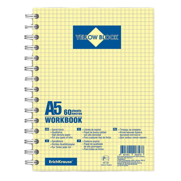 Тетрадь общая Erich Krause Yellow Block, А5, 60 листов, в клетку, на спирали, картон