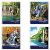 Тетрадь общая Hatber Водопады, A5, 96 листов, в клетку, на спирали, мелованный картон