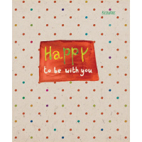 Тетрадь общая представлена в формате А5+. Блок выполнен из офсетной бумаги и состоит из 48 листов в клетку. Обложка изготовлена из картона. Дизайн обложки — Happy. Общая тетрадь скреплена с помощью скрепок.