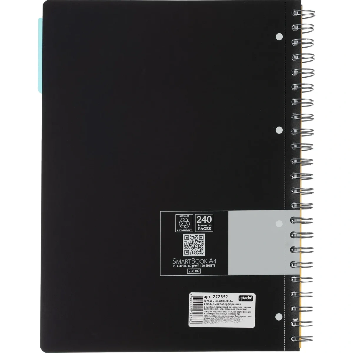 Тетрадь Smartbook серо-бирюзовая, А4, 120 листов, в клетку, на спирали, пластик