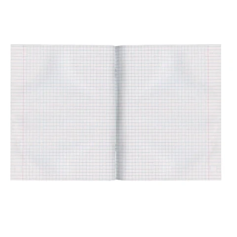Внутренний блок содержит 96 листов типографской бумаги плотностью 60 г/м2 с серым оттенком. Однотонная обложка выполнена из мелованного картона. Линовка – клетка с полями. Скрепка надежно скрепляет листы между собой. Белизна – 80%. Формат А5.