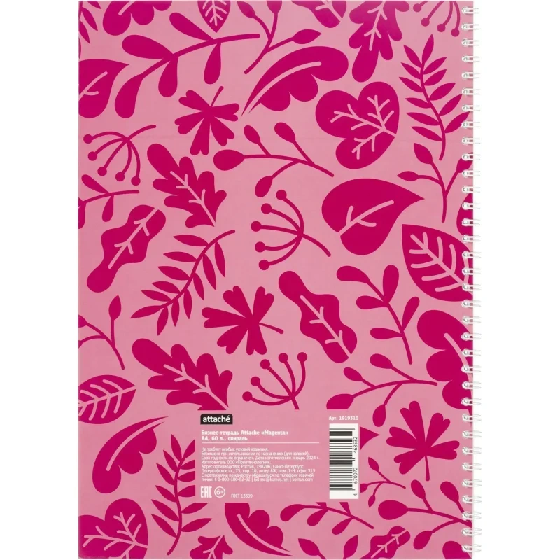Тетрадь общая А4 60л Attache Magenta клетка, 65г,бел.100%,греб,карт,ВД-лак
