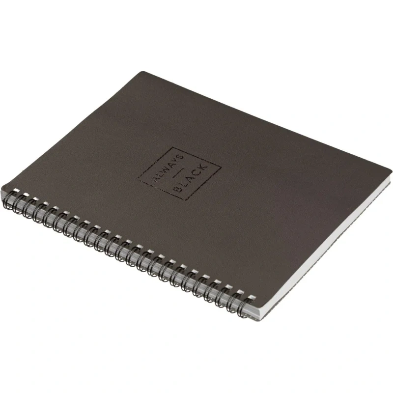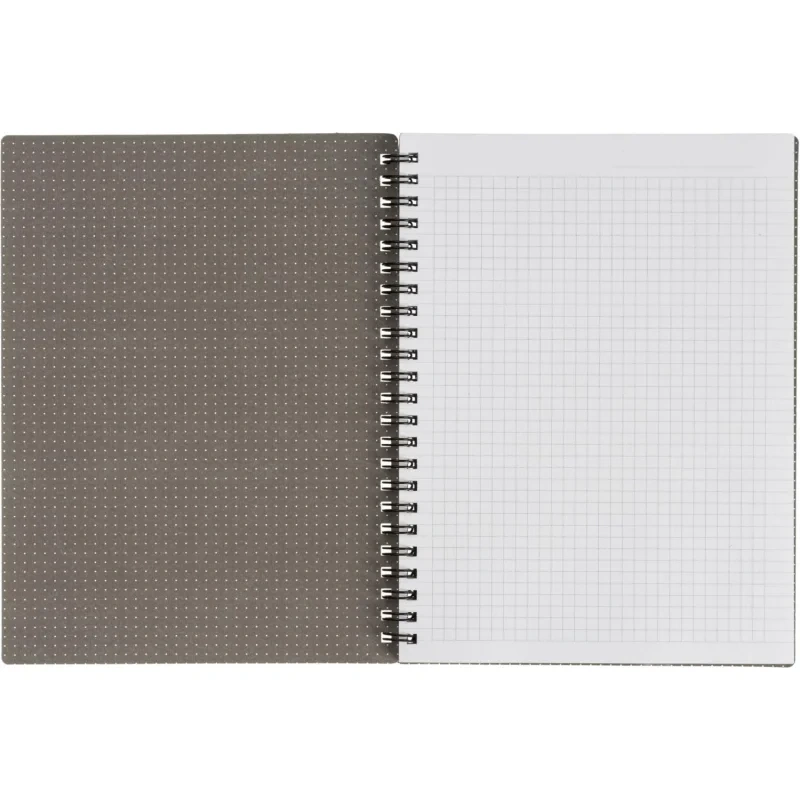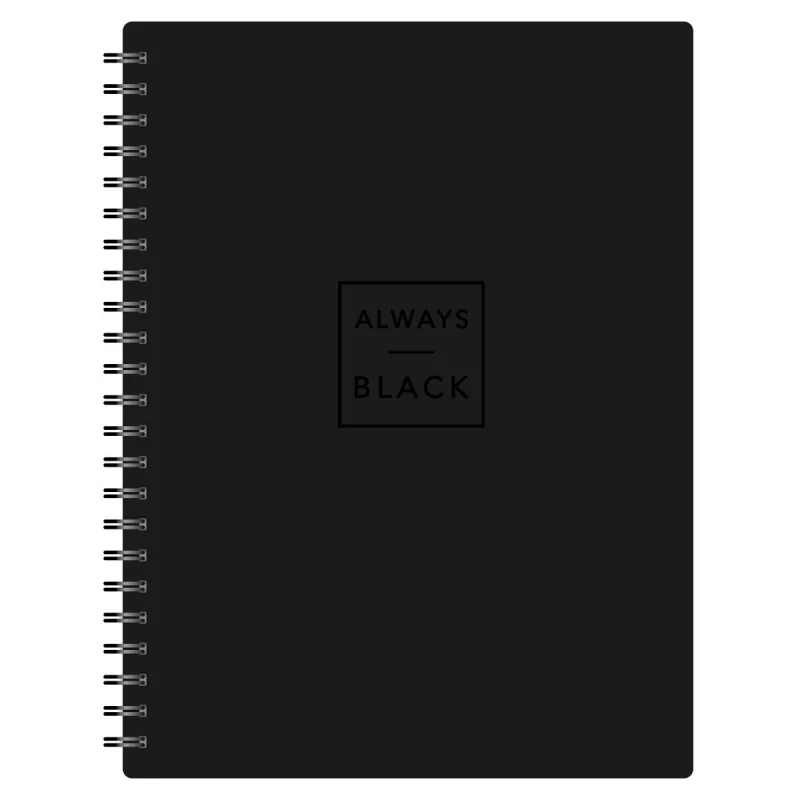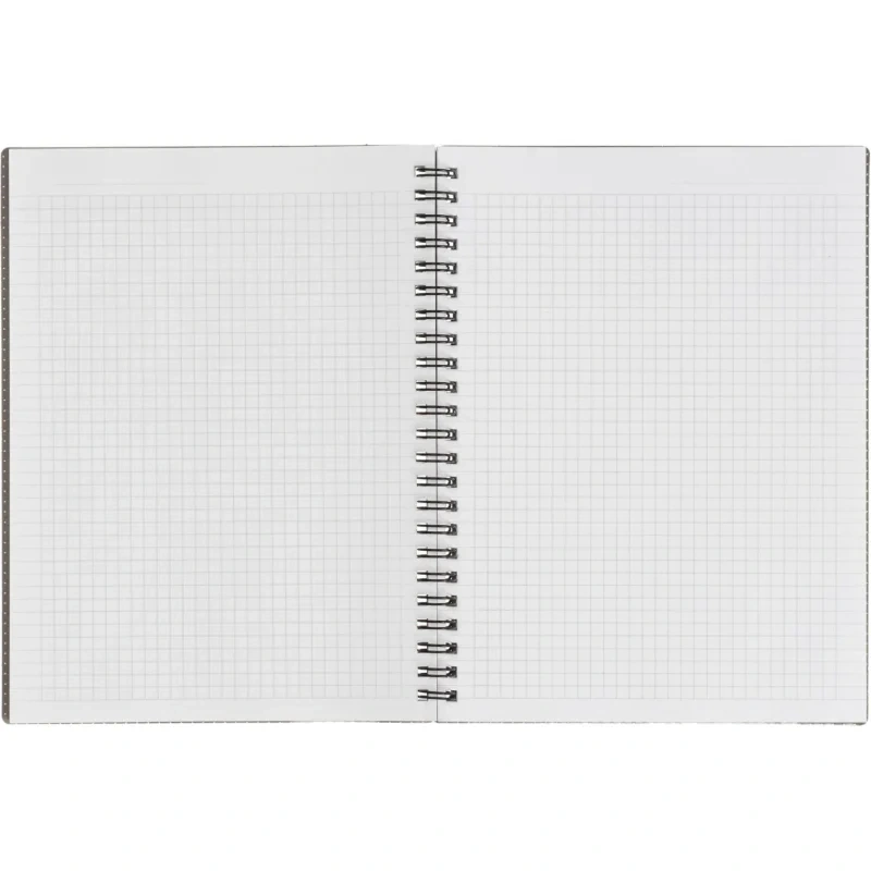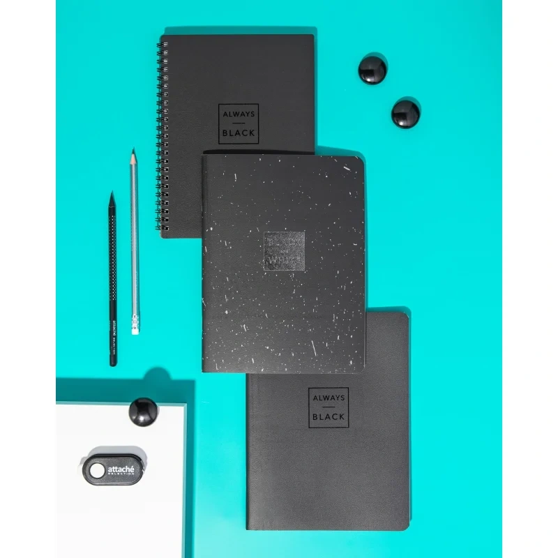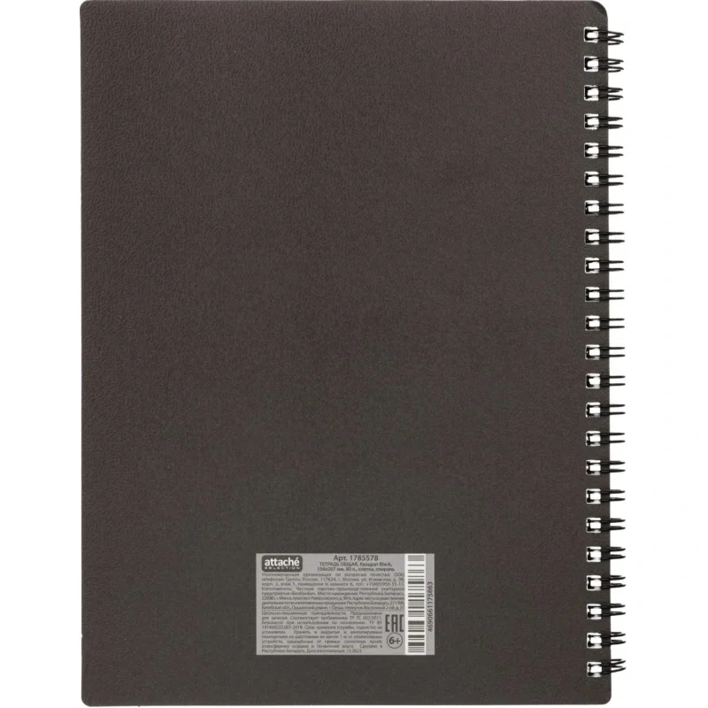 Тетрадь общая Attache Selection Квадрат Black А5 156х207мм 80л клетка спира Тетрадь общая Attache Selection А5 формата (156х207 мм) на спирали станет незаменимым помощником в записи лекций, уроков или задач в офисе. Крепление на спирали позволяет незаметно для тетради удалять листы и удобно перекидывать их при использовании. Обложка из мягкого, но прочного картона плотностью 320 г/м2 с микротекстурированием, тиснением фольгой и печатью цветного принта с внутренней стороны имеет приятную ламинацию, которая делает изделие прочнее и долговечнее. А скругленные уголки позволят мягкой обложке надолго сохранить первозданный вид. Внутренний блок в клетку с прямыми уголками на 80 листов (160 страниц) из высококачественной бумаги белизной 100% и плотностью 65 г/м2.