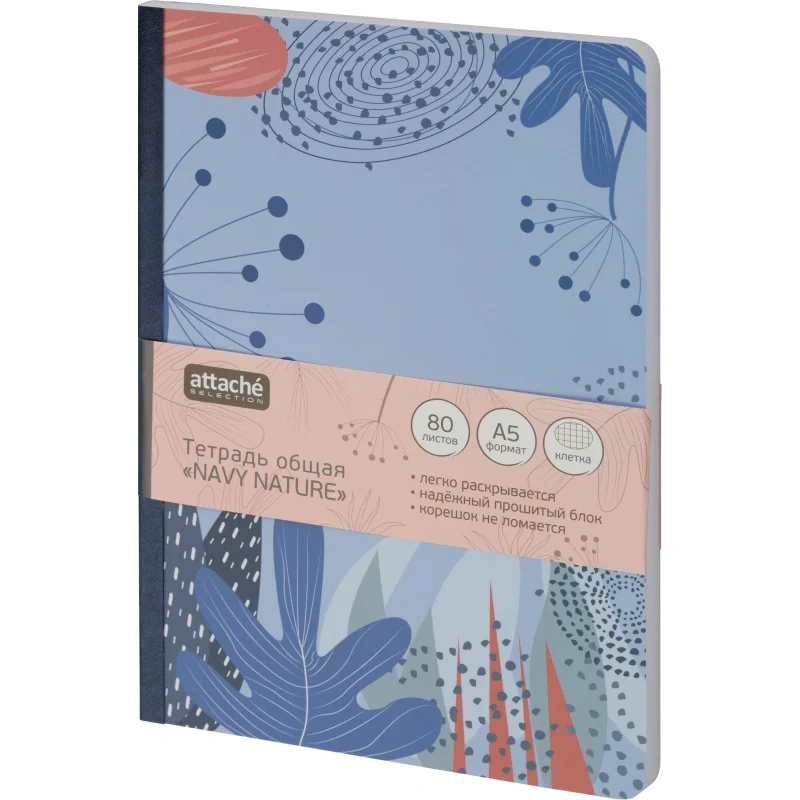 Тетрадь общая Attache Selection Navy nature Голубой А5 80л клетка, ШКС